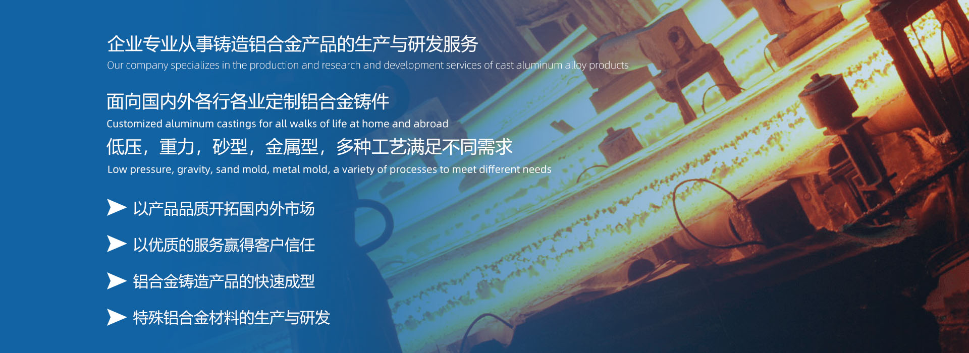 本公司致力于引進先進的鋁合金新材料和鑄造技術理念及標準,專注于鋁合金鑄造產品開發(fā)、生產和服務,緊緊圍繞技術創新,為客戶提供滿意的技術服務及優(yōu)質可靠的產品。堅持以鋁合金鑄造加工生產和服務為主體,建立、實施并持續改進質量管理體系,為增強顧客滿意不懈努力。產品廣泛應用于特高壓電氣組件、醫療器械、藥品包裝機械、汽車零部件、空壓機部件、高速機床、能源裝備及軍工部件等領域。